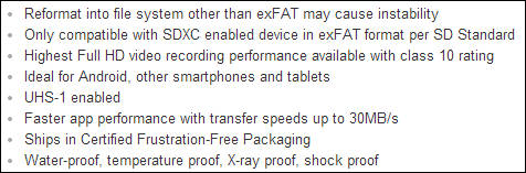 Perfect for today's high-performance Android smartphone and tablet users who want to get the most out of memory-intensive activities like 3-D gaming and apps, the SanDisk Mobile Ultra microSDHC UHS-I card drives transfer speeds of up to 30MB/s for faster app response times. For shooting Full HD video and high-megapixel pictures, it delivers two times the speed of typical microSD memory cards and a class 10 rating for the highest video recording performance available. In addition, the included SanDisk Memory Zone app lets you easily view, access, and backup all of your digital files from your phone's memory, additional memory card and cloud services all in one convenient place.
