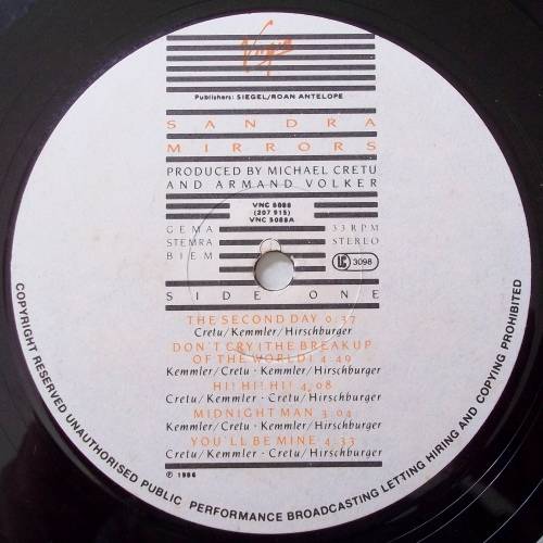 SANDRA - MIRRORS - LP - VG+/VG+ - ELECTRONIC/SYNTH POP