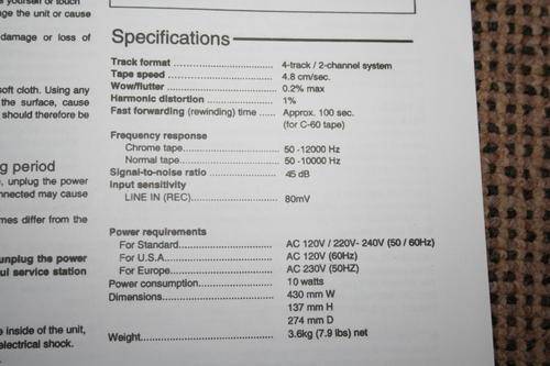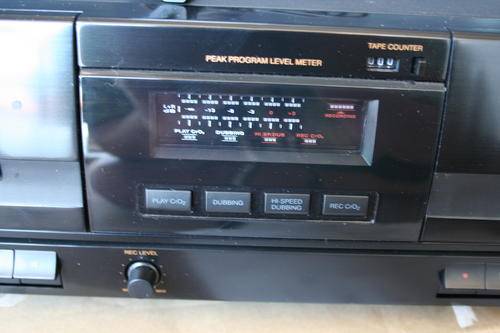 search tags: tape recorder player deck cassette double four 4 track hi-fi sound dubbing dub high speed rewind forward play record rca in out component