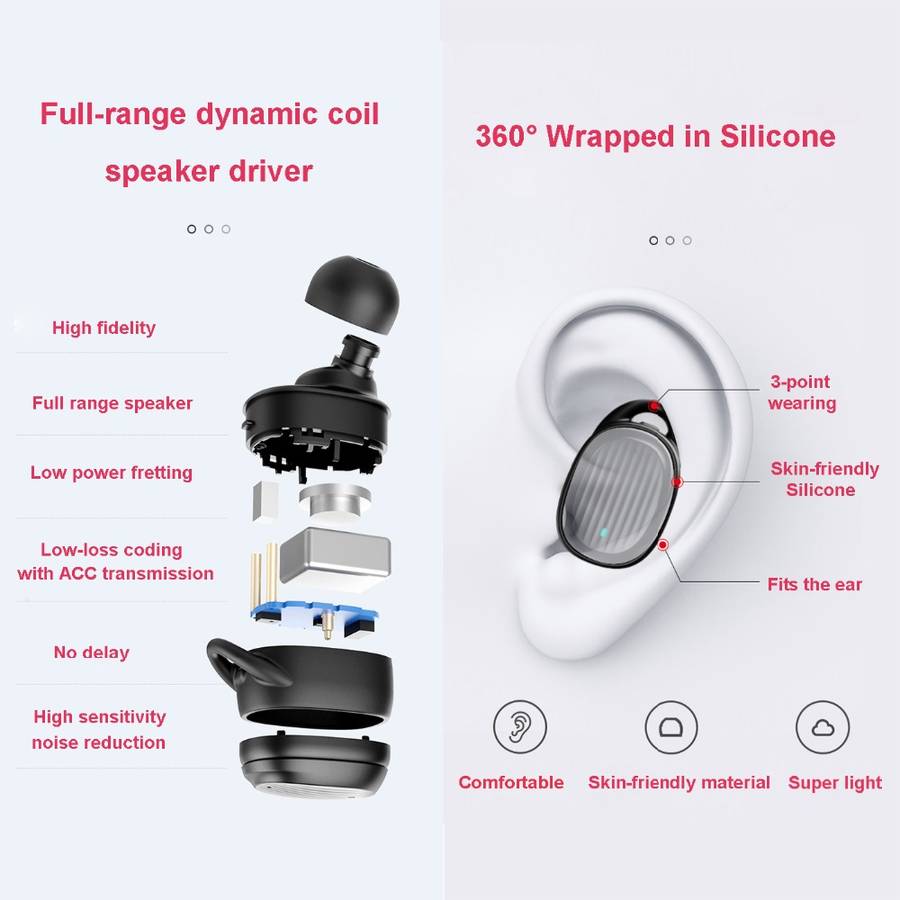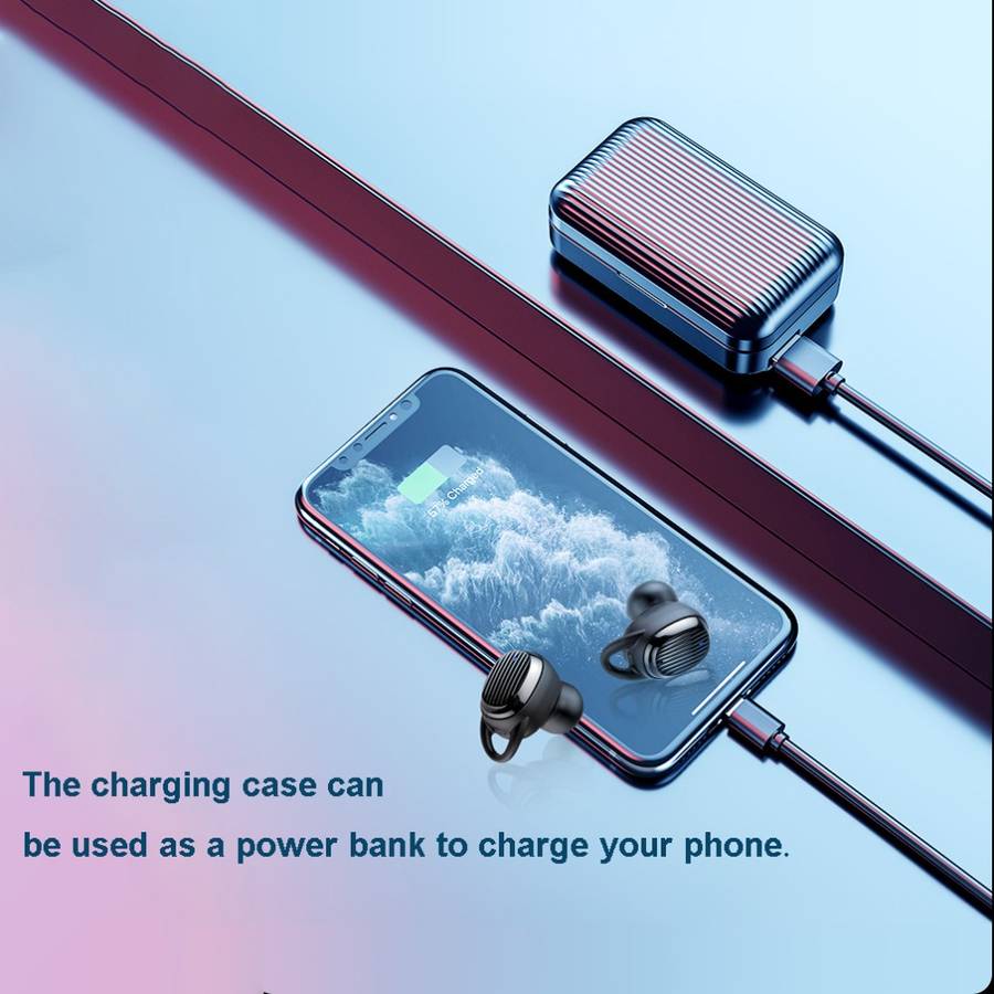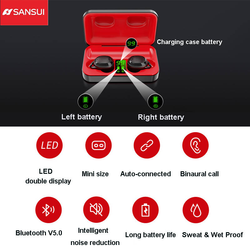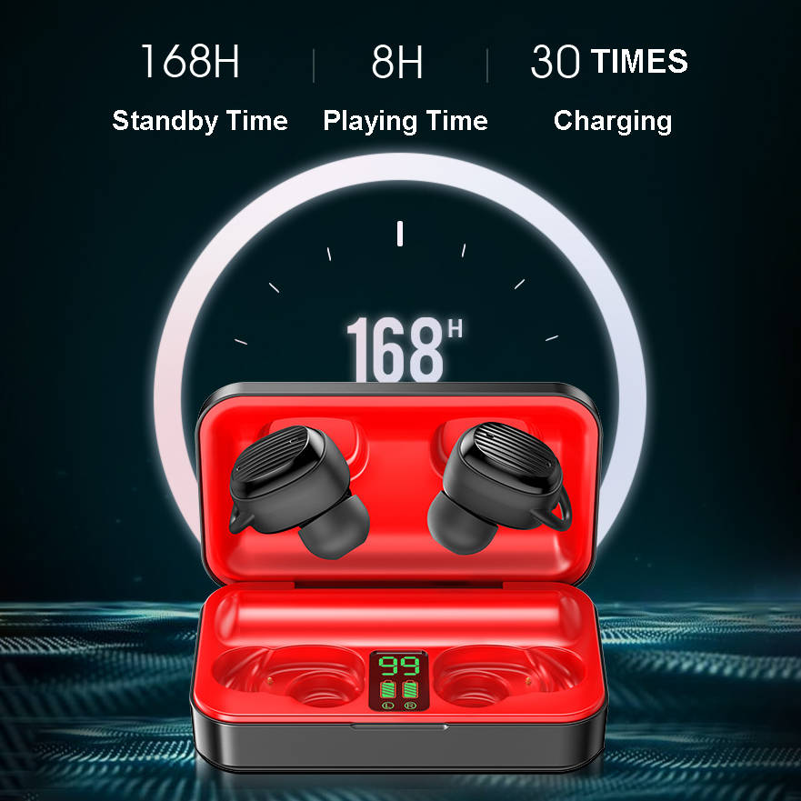 aFeature:Emergency rechargeable, LED power display, Touch control, IPX5 Waterproof,Low latency, HiFi 9D stereo