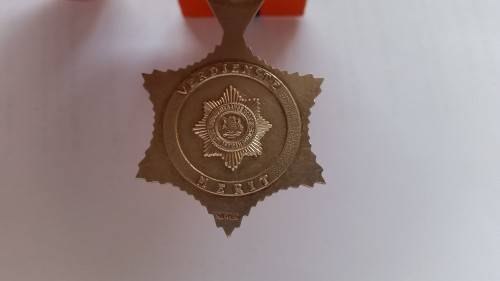A full-size SAP Star for Merit with miniature. Both court mounted for display. The full-size is marked silver on the reverse - unnamed.