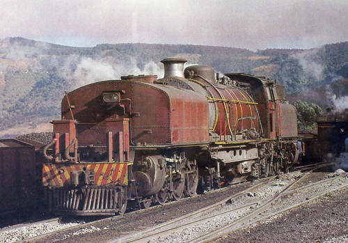 This solid brass, original, numberplate was carried by the SAR Class GF Garratt, Number 2407, delivered from the German builders, Hanomag, in 1928. The GF's were mixed-traffic locomotives, used very successfully on branch and secondary main lines throughout the country. The GF Garratt is shown inthe 2 photos below