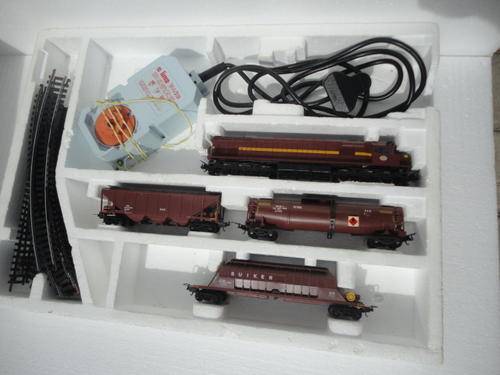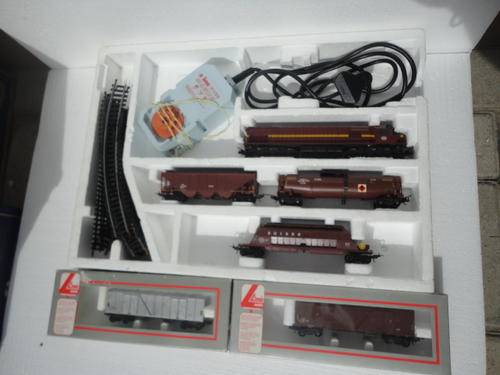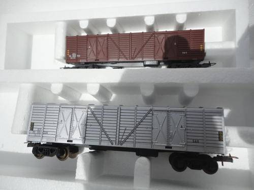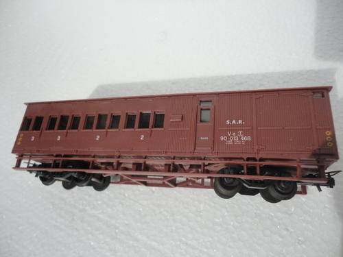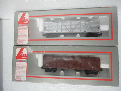 Boxed original SAR Lima goods train set with three good wagons, controller and track all in excellent condition.....plus three mint condition boxed wagons consisting of a silver cattle truck, a brown cattle truck and a V8 guard's van. As can be seen from the pictures they are all boxed and the guard's van has all the side steps intact. Only two body clips on the diesel was fixed with wire clips. No rust on the couplers, all hand rails and hooters in place.