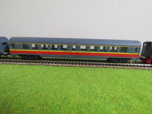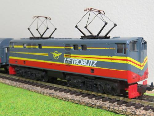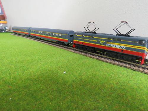SAR Metroblitz 5E with 2 coaches all in fairly good condition. 5E unit was serviced and runs well. Correct SAR bogies and working pantographs with springs intact.