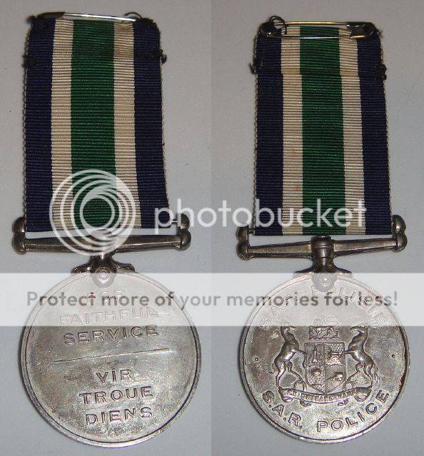SAR Police Medal for Faithful Service to Sersant JM Kitshoff 22.2.1961
