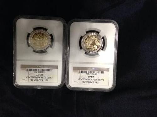 SARB MS67 - 2011 SOUTH AFRICAN RESERVE BANK R5 NGC GRADED
