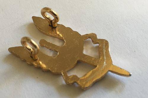 A two-toned (gold & silver) "staybrite" aluminium-alloy badge of the Special Air Service (SAS) Regiment. I believe this example is Australian. Not sure if it's a beret, cap or collar badge. (40mm high)