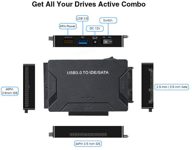 Adapter enables you to connect hard drive to PC via USB port. This is the perfect tool to duplicate, backup or transfer large amount of data from one drive to another