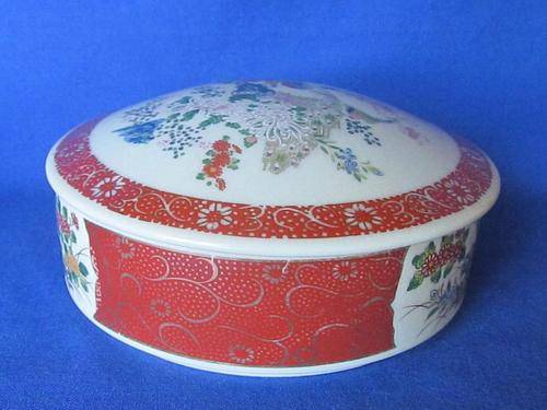 This Satsuma Japan Lidded Bowl decorated in the Imari style is in good condition with no cracks or restoration.