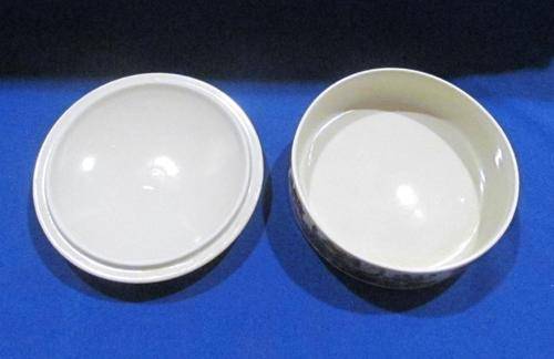 There is a minor chip on the underside of the lid and very slight pattern loss on the top.