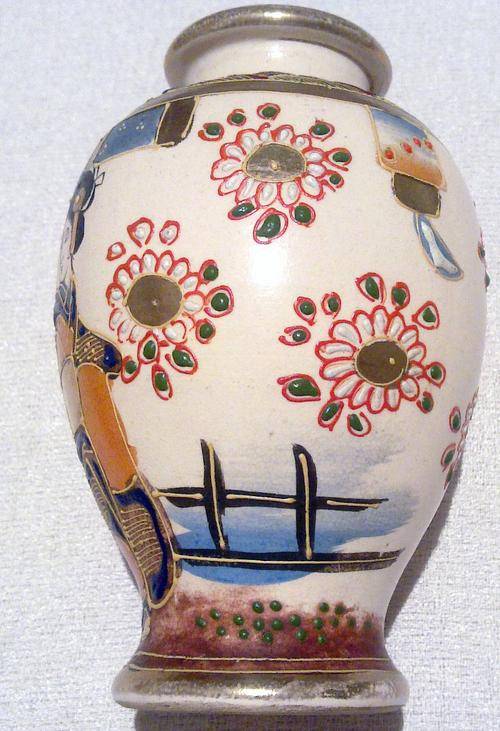 A beautiful Satumo styled vase measuring 12cm high. The pattern and painting on the vase is outstanding, take a close look at the pictures. Spoil yourself at a low price!