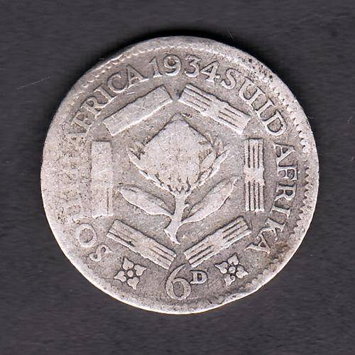 SAU 1934 .80 Silver 6 Pence. This coin is quite worn.
