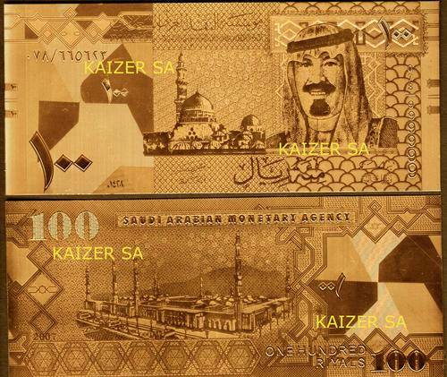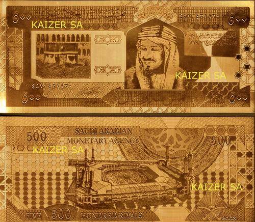 Saudi Arabia 24k Gold Notes 500 & 100 Riyals Set *Ka'aba,Mosques,Kings* *Crazy Wednesday*