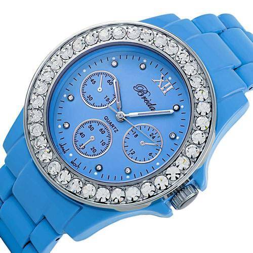 The "Sawyer" watch by Breda is fun, bold, and perfect for the spring and summer! Classic in design but with trendy flair, this watch is sure to become a wardrobe staple. The yellow dial features rhinestone encrusts which serve as time markers, and a Roman numeral at the 12 o'clock position. The dial also boasts three non working chronograph sub dials and has contrasting luminescent hour and minute hands, and a silver second hand for easy time keeping! The rhinestone encrusted silver metal bezel makes a bold statement and the trendy yellow metal three link band stays securely on your wrist with a silver metal fold over clasp.