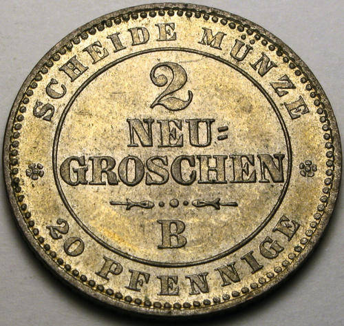 SAXONY ALBERTINE 2 Neu Groschen 1864 F - Silver - Johann - UNC