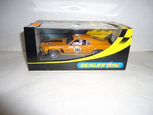 The model on display is a Scalextric - Ford Boss 302 Mustang 1970 - 1/32 Scale, in mint condition. The box is still in excellent condition.