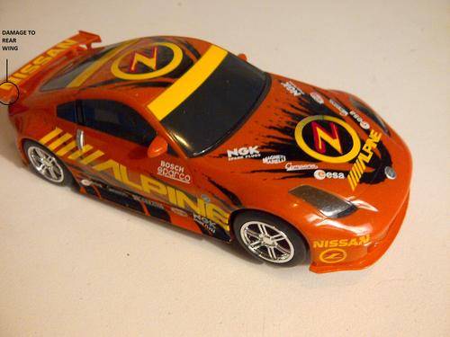 SCALEXTRIC HORNBY NISSAN 350Z - 1/32 SCALE SLOT CAR (FAIR CONDITION , SADLY DAMAGE TO REAR WING , NOTE THIS IS THE DRIFT VERSION).