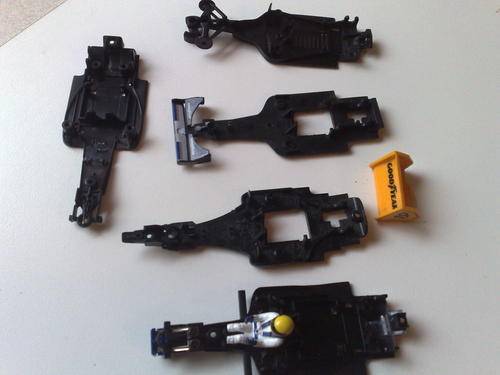 SCALEXTRIC SPARES - 5 X F1 CHASSIS AND ONE WING