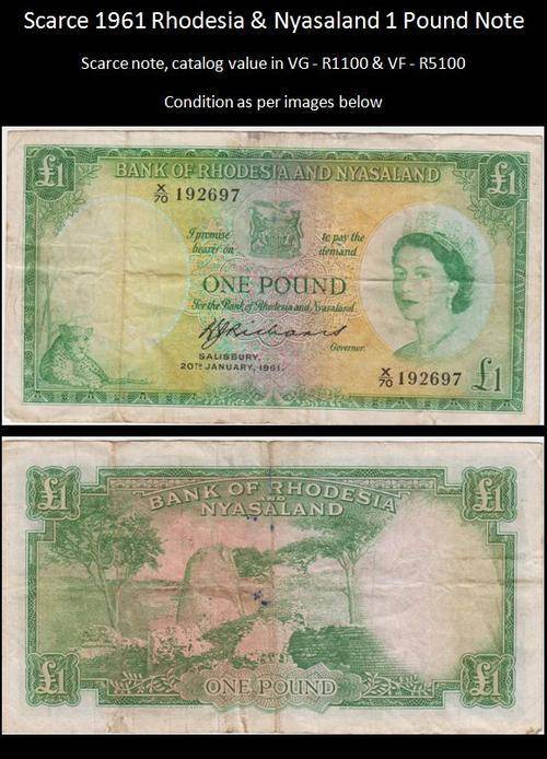 Scarce 1961 Rhodesia & Nyasaland 1 Pound Bank Note