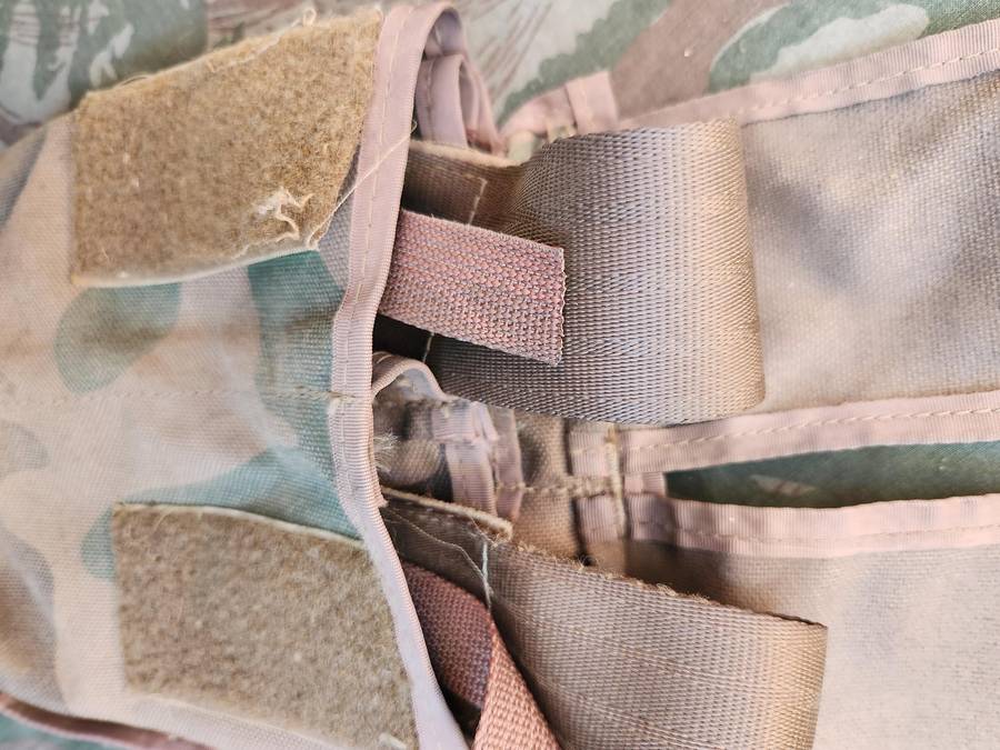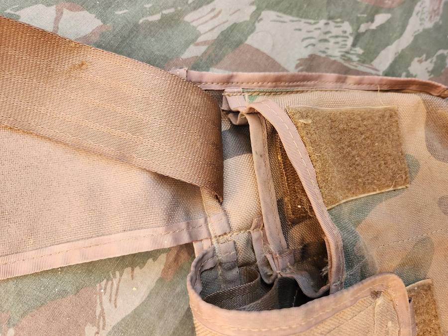 Here on auction we have a single scarce double (holds four R4 mags) flap patt 90 "cabbage patch" camo mag pouch in good used condition.