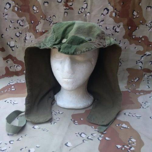 The hoods were designed to be removable and were not often used or issued together with the smocks. Made from a cotton twill and includes a lining and cur very spacious.