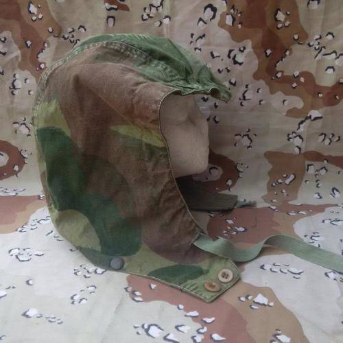These hoods are pretty scarce and many owners of the original Belgian brushstroke Dennison jump or para smocks do not have these hoods.
