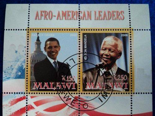 MALAWI - 2 STAMPS 2008 OBAMA + MANDELA. AFRO - AMERICAN LEADERS.