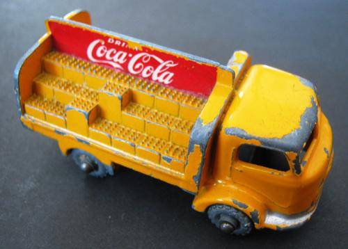 HARD TO FIND MOKO LESNEY NO 37 A BANTAM CARRIER "COCA COLA" TRUCK FROM MATCHBOX LESNEY, ENGLAND. IN EXCELLENT CONDITION WITH ALL PARTS PRESENT AND UNBROKEN. ISSUED IN 1956 WITH THE FIRST SCARCE UNEVEN LOAD AND NO BASE PLATE!!