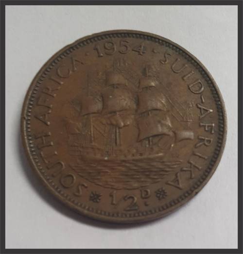 SCARCE!!! SA 1954 1/2 Penny Picture of actual coin, VERY LOW MINTAGE!!!