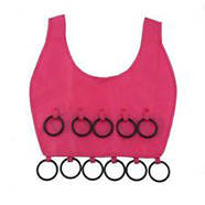 Polyester fabric body with plastic rings; swiveling metal hanger