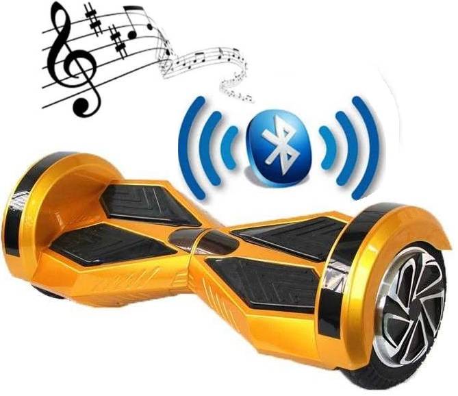 Sceedo 8.0 Inch Bluetooth Electric Two wheeler Self-Balancing Board - Built-in LED lights, Maximum Speed Limit 10km/h, Max tilt around 15°-30°, Load 20-100kg, Lithium-ion 2.4 AH Battery, Voltage 36v, non-pneumatic hollow Tyres ¿ Gold and Black, Retail Box, 1 year Limit warranty