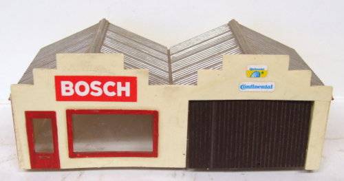 On auction is this workshop in HO scale. Some of the small detailed parts may be missing on this model. It measures 13cm long, 6cm wide and 5cm high. It has an opening garage door. It is brittle of age and will be packed accordingly to try and prevent shipping damage. Please see photos for detail for it is part of the description. Contact me by email for inquiries.