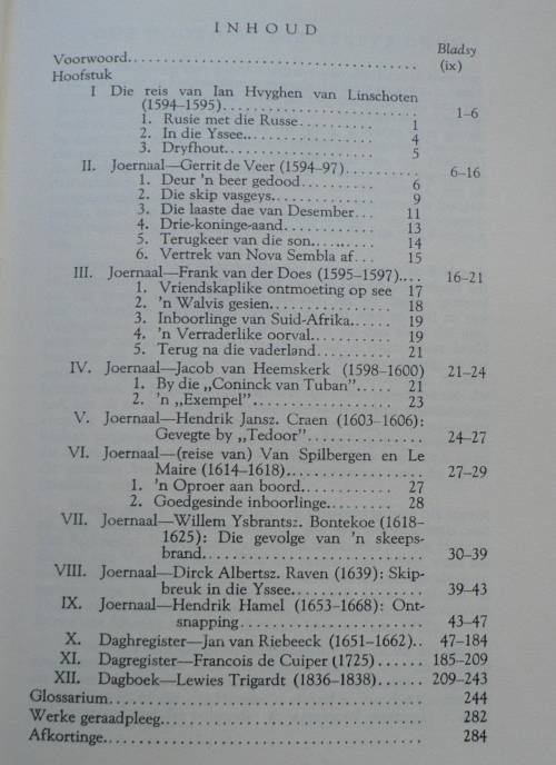 J.L. VAN SCHAIK, 1975. 285 BLADSYE, VAN BESONDERE BELANG IS DIE GEDEELTE UIT DIE DAGBOEK VAN LEWIES TRIGARDT. PRAGTIGE ANDER UIT DIE NEDERLANDSE GOUE ERA VAN SEEVAART. OOK 'N VERKORTE WEERGAWE VAN JAN VAN RIEBEECK SE DAGBOEK.