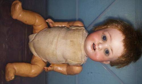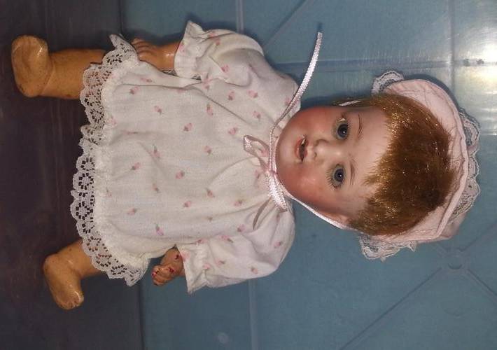 PLEASE SEE ALL PHOTOS FOR DESCRIPTION OF CONDITION. DUE TO AGE THERE IS WEAR ON THE DOLL ALSO CLOTHING IS NOT ORIGINAL.