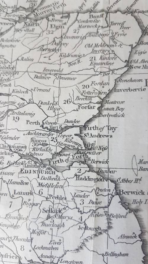 The map is the original, not a later copy, on the original rag paper. Map is 23 x 20 cm. There are some closed tears in the blank sea area of the map on the right with no loss.
