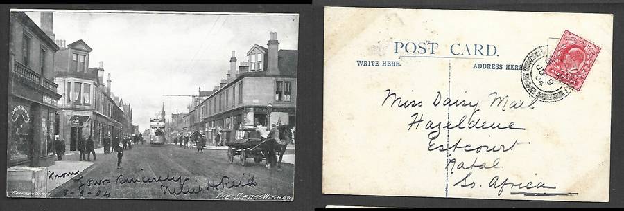 Scotland, postcard, The Cross, Wishaw, 1d, WISJAW JU 9 04 cds > NATAL