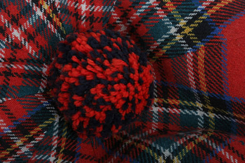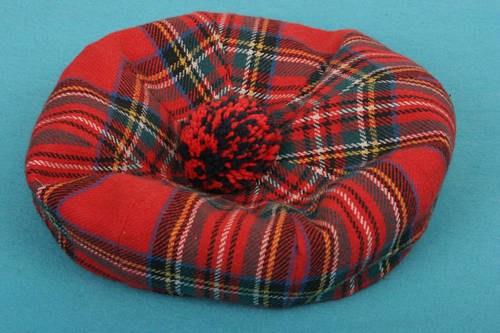 Genuine Scottish Tartan Beret with woolen pom pom on top.