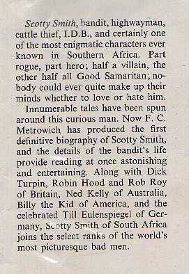 Scotty Smith, South Arica's Robin Hood - F C Metrowich (1970)