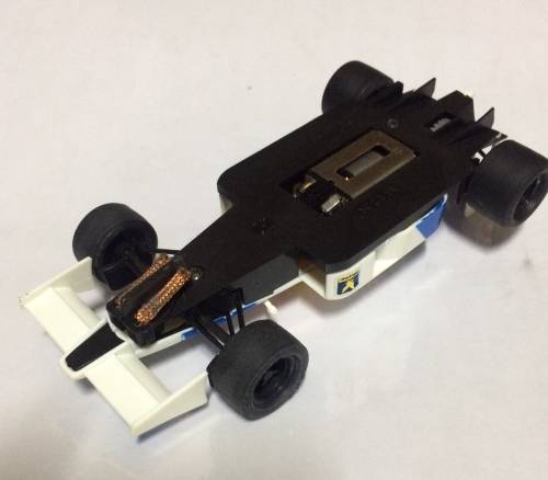 This VERY RARE (when last did you see one of the these?) SCX McLaren F1 in the blue "Marlboro' livery is in as new condition, with even the original mirrors still in place, and with soft grippy tyres that have been trued for great grip and a smooth, quiet ride. Even the braids are the original fitted by SCX in the factory in Spain. The motor is very strong and the car drive exceptionally well, remembering of course that this era of SCX car came WITHOUT magnets.