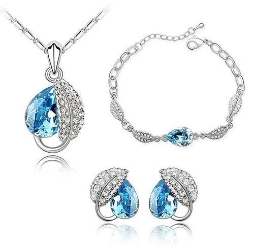 Sea Blue Austrian Crystal Love sickness Necklace Earring Bracelet Sets