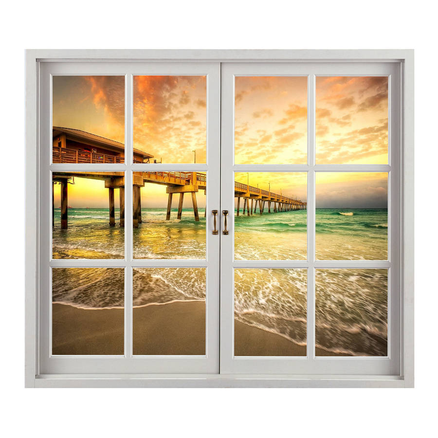 Sea Bridge 3D Artificial Window View 3D Wall Decals Room PAG Stickers Home Wall