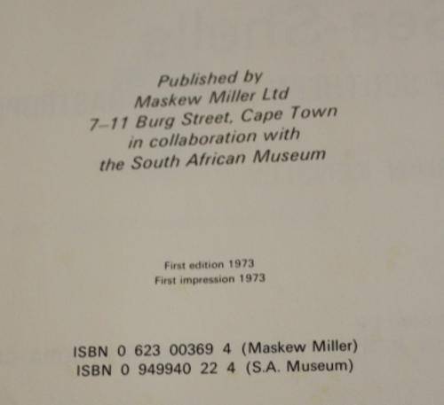 Hardback with tatty DJ. Maskew Miller Ltd. Cape Town First edition First impression 1973. 225 pages plus index.24.5 x 18.25 cm