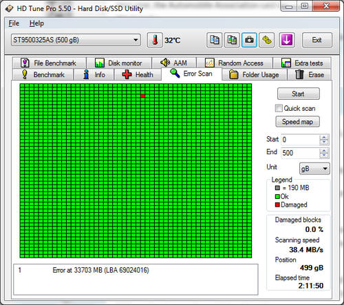 Seagate Momentus 5400.6 500GB 5400 RPM 8MB Cach 2.5" Internal Hard Drive With 1 Bad Sector