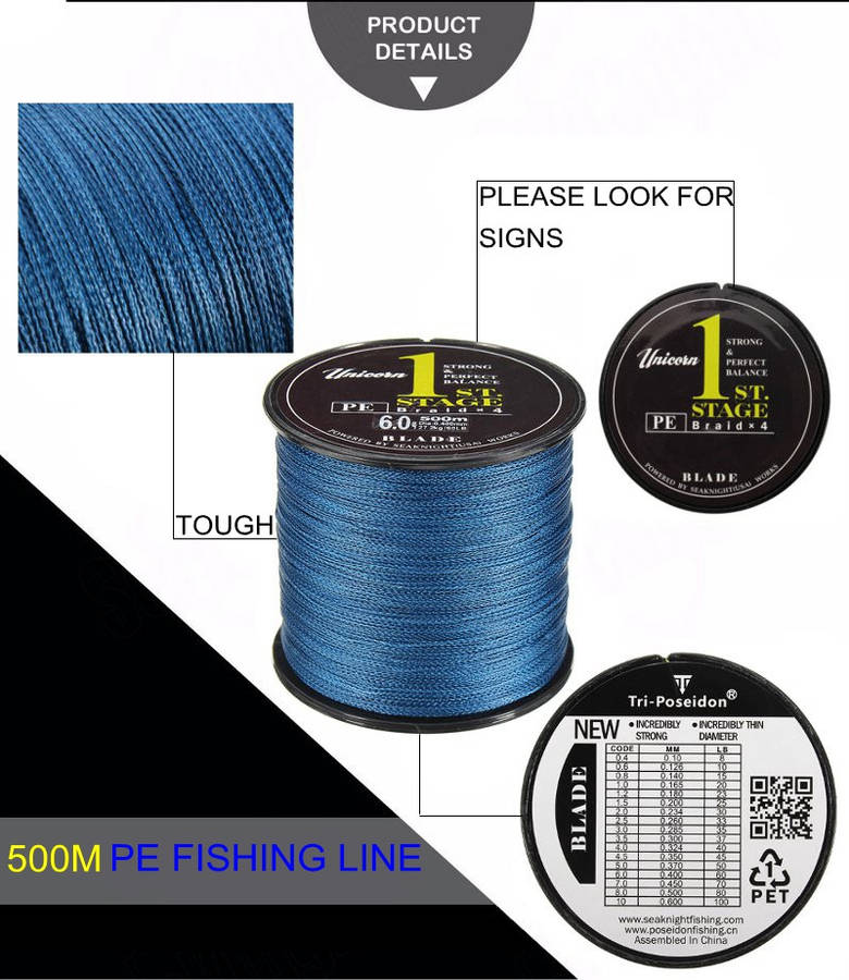 SeaKnight Brand 500M PE Braided Fishing Line Multifilament 20-60LB Fish Line