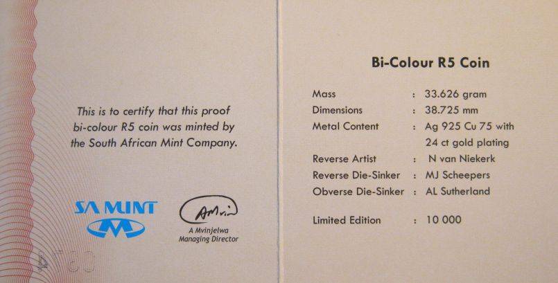Sealed - SARB 90th ANNIVERSARY PROOF R5 SILVER GOLD PLATED CROWN