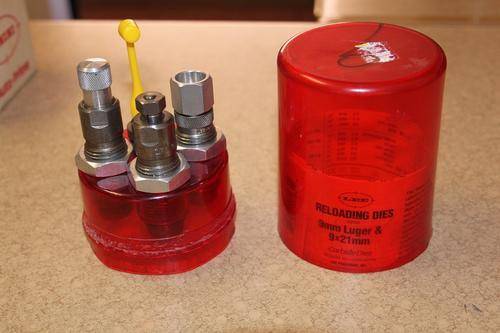 Die Set includes Carbide Full Length Sizing Die, Bullet Seating Die, Powder Thru Expanding Die, Universal Shell Holder, Powder Dipper and Instructions/Load Data