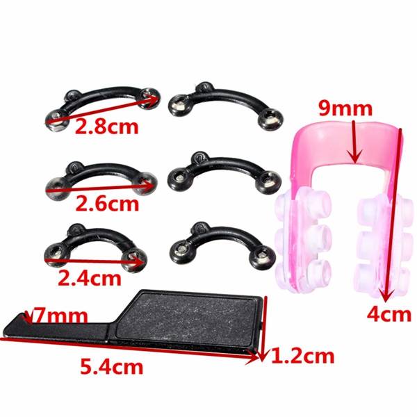 Description: Item Type: Nose Up Shaper Material: Medical grade silicone and plastic Color: Black Quantity: 3 pairs Type: 1, 2, 3 Size: 1: 2.4cm 2: 2.6cm 3: 2.8cm Adjustable item size: About 5.4x1.2cm (LxW) Hook: 7mm Weight: About 21g Package Included: 6 X Secret Nose Clips 1 X Nose Clip 1 X Adjust Hook
