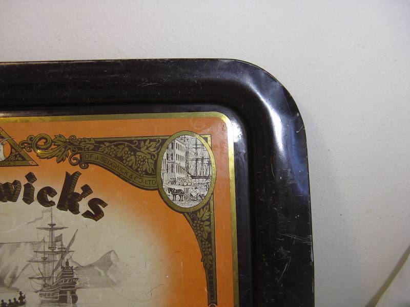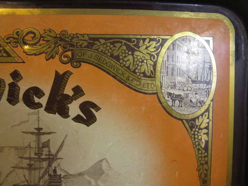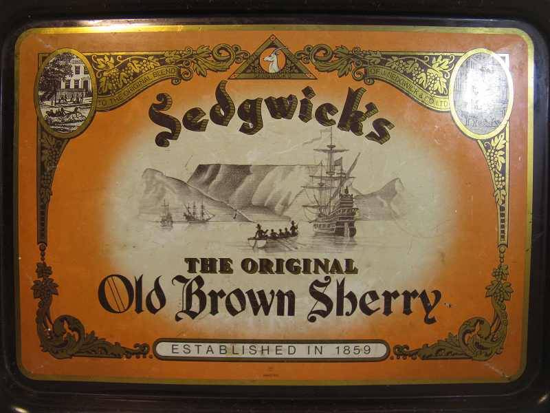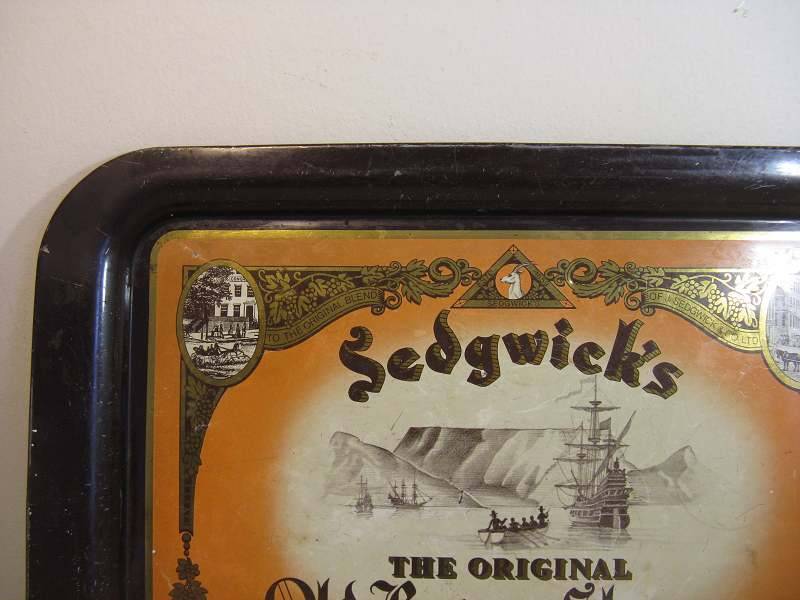 SEDGWICK'S - THE ORIGINAL OLD BROWN SHERRY METAL TRAY. L 44.3cm x W 31cm.