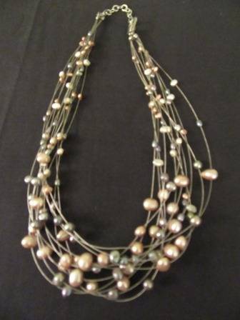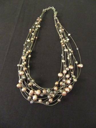 Stunning Seed Pearl Multi strand neclace in greys and gold Length 22cm.