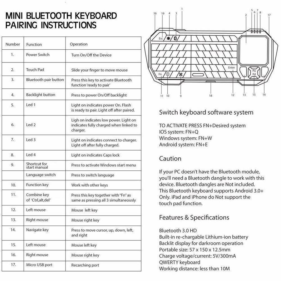 Click the Bluetooth pairing button to enter the Bluetooth pairing mode, and use the Bluetooth settings on various devices to pair it with the Bluetooth keyboard